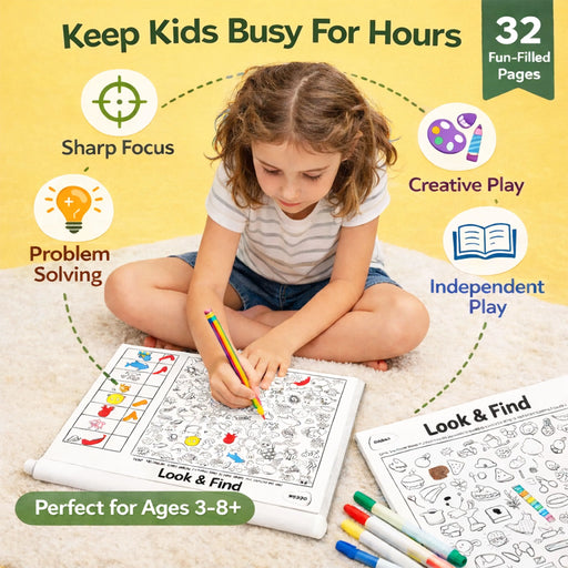 Give them something that holds their attention for hours. Each page combines fun search challenges with creative coloring to build focus, observati...