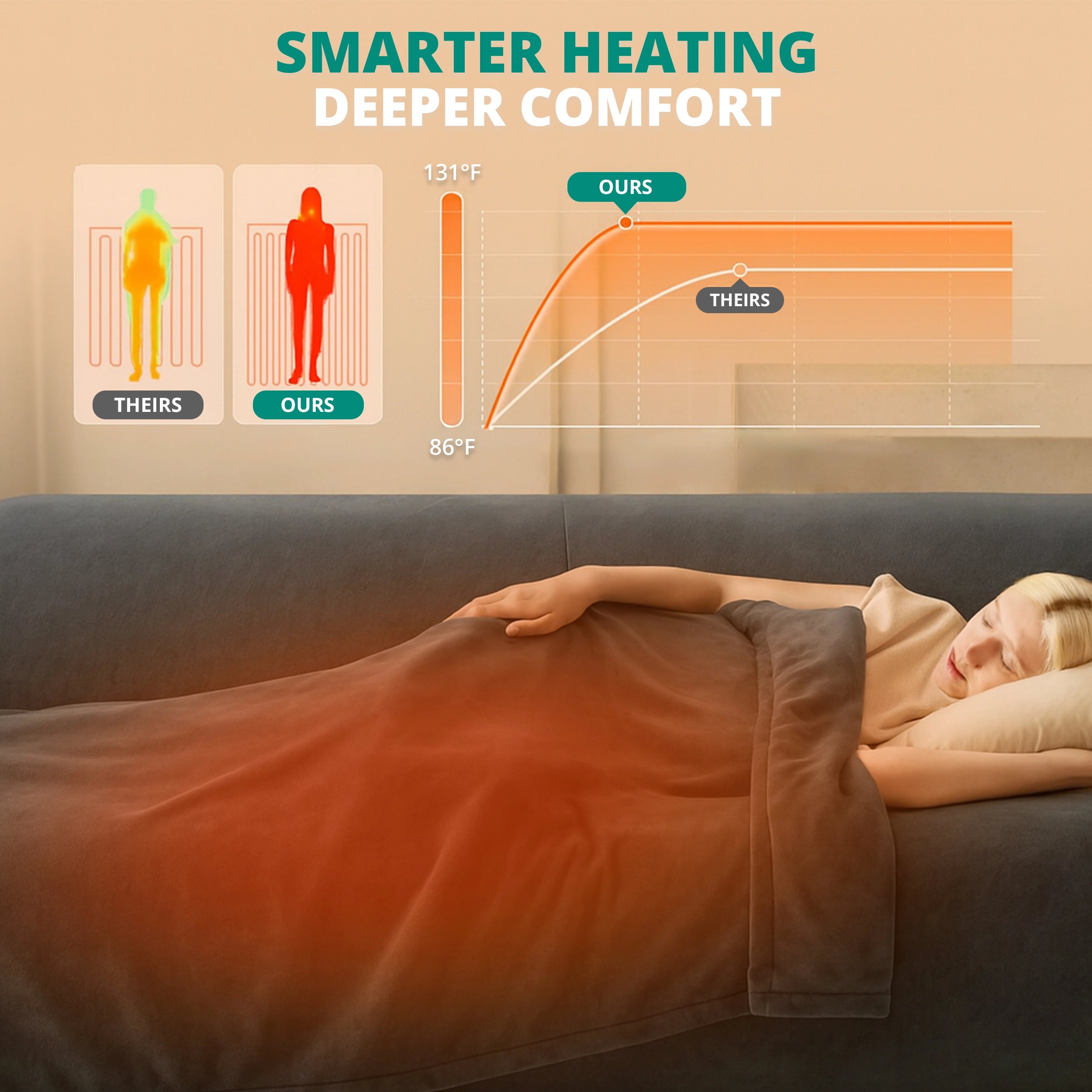 Wrap yourself in soothing warmth with an ultra-soft blanket featuring smart technology that provides even, adjustable heat for total comfort.
