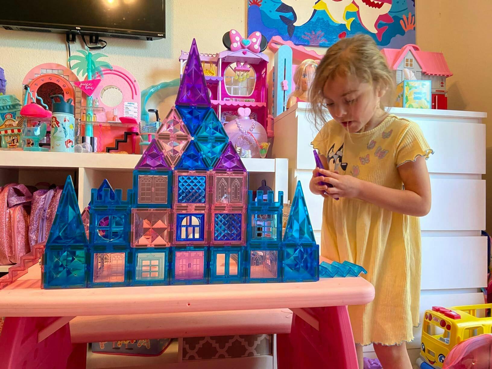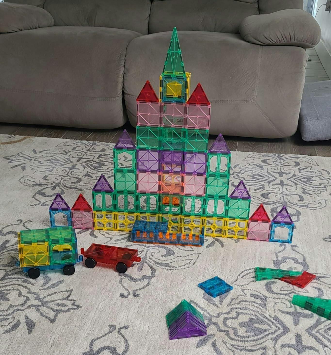 Watch their eyes light up as they build castles and rockets. This 134-piece magnetic tiles set sparks creativity, boosts confidence, and creates lasting memories.