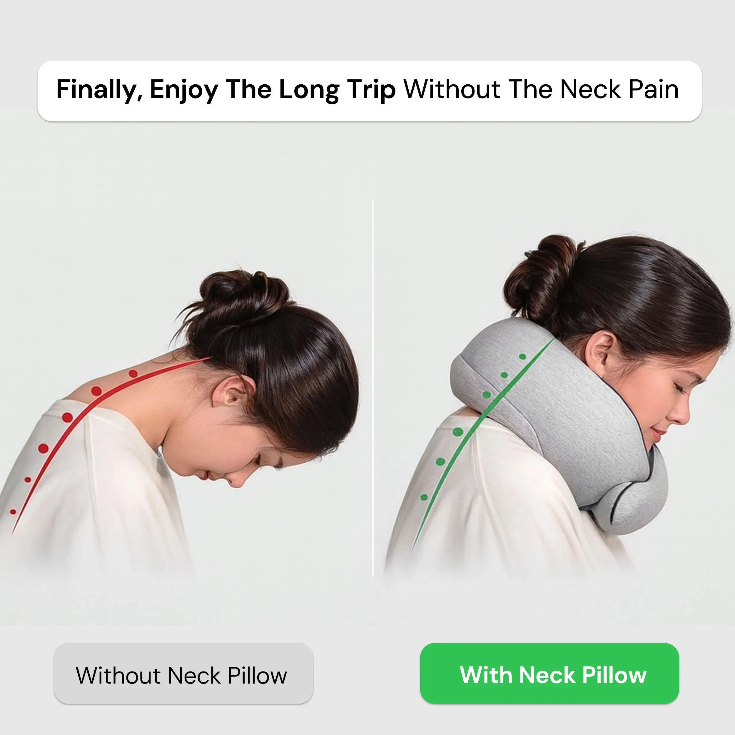Traditional seats offer little to no support, causing strain and discomfort. This ergonomic pillow keeps the neck aligned so travelers don't wake up sore.