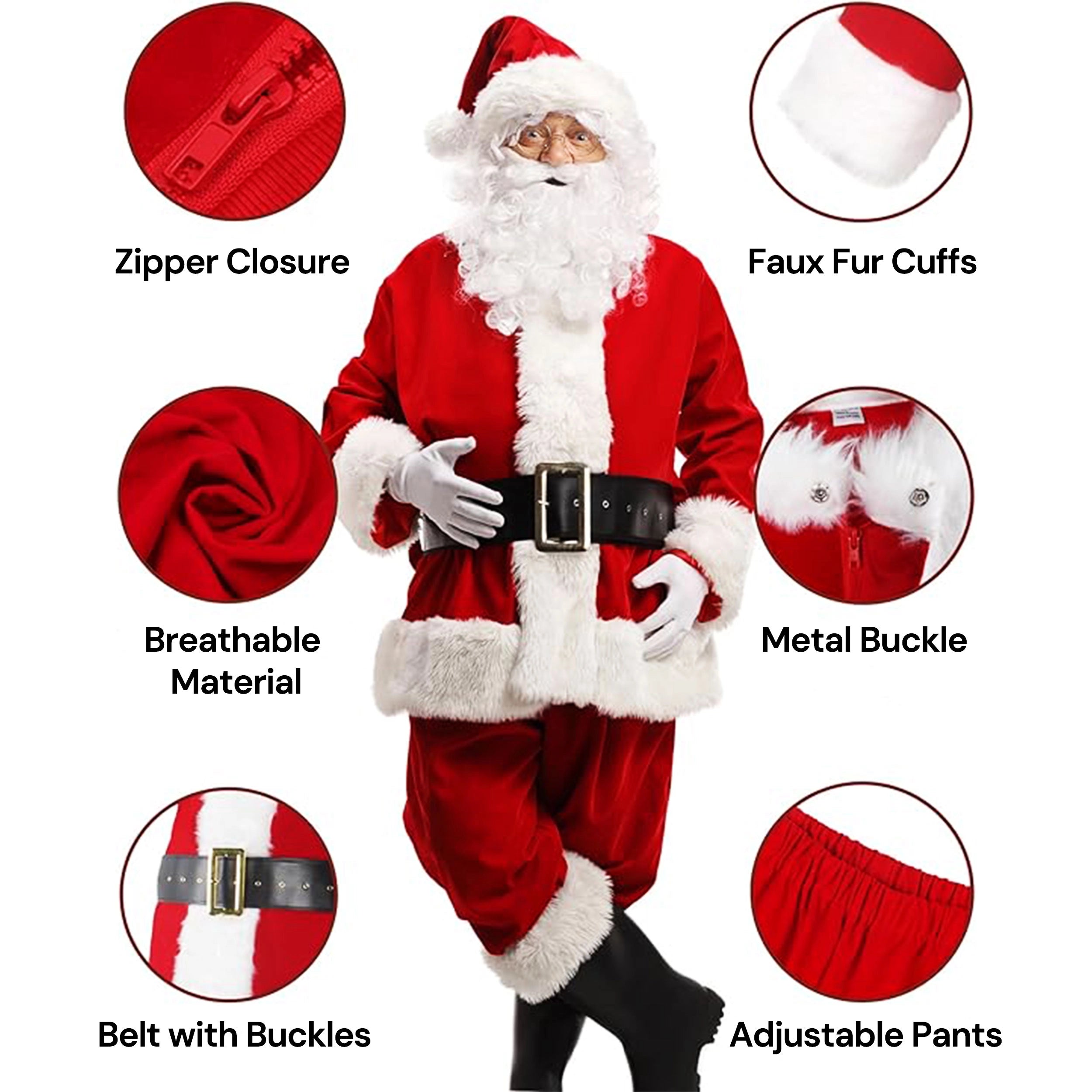 Authentic full 9-piece Santa set inspired by your favourite Christmas character! It's perfect for Christmas, cosplay, parties, or dress-up fun.